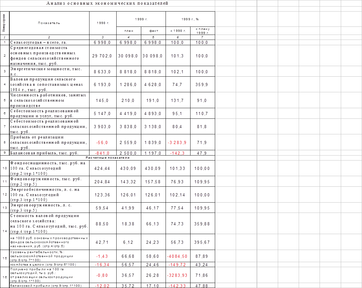 Сложившаяся в данный момент общероссийская экономическая ситуация далеко не благоприятна для производства сельхозпродукции. Из-за непомерно высоких цен на запасные части, комплектующие и горюче-смазочные материалы, сельское хозяйство, как производитель сырья для пищевой промышленности не является рентабельным, о чем свидетельствуют показания в «Анализе основных экономических показателей»