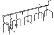Сборное стойловое оборудование для коров ОСК-25А. Это оборудование монтируют в стойлах перед кормушками. Оно обеспечивает содержание коров в стойлах согласно зоотехническим требованиям, фиксацию отдельных животных при отвязывании всей группы коров, а также подачу воды от водопроводной магистрали к автопоилкам и служит опорой для крепления молоко- и вакуум-проводов доильных агрегатов.
