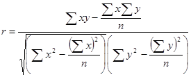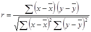 где r – коэффициент корреляции; x, y – значение изучаемых признаков;