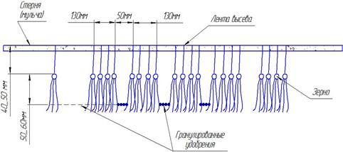 Рисунок 24 – Схема ленточного посева семян и удобрений с разноуровневым их рамещением.