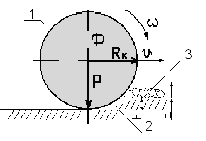 1 – Каток, 2 – Сминаемый слой, 3 – Комок почвы.