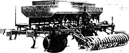 В Эстонском НИИ земледелия и мелиорации на базе сеялок СЗ-3,6 и СЗУ-3,6 разработана комбинированная машина МКПП-3,6, рисунок 22, для предпосевной обработки почвы и посева зерновых культур с одновременным (или раздельным) внесением гранулированных минеральных удобрений. Дисковые сошники серийных сеялок СЗ-3,6 и СЗУ-3,6 заменены на комбинированные рабочие органы, состоящие из культиваторных пружинных зубьев КПЦ-90 и семяпроводов с дефлекторами. Машина оборудована выравнивающим приспособлением и прутковыми катками, агрегатируется с трактором МТЗ-80/82, а при помощи сцепок - с трактором Т-150К(2 .3 машины) и К-700(4 . 5 машин). [5]