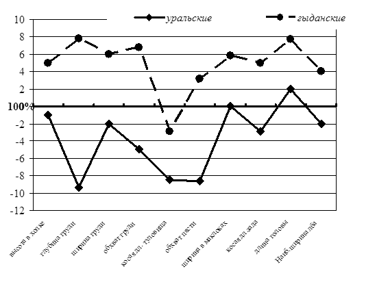 Рис.2. Экстерьерный профиль взрослых самцов оленей ЯНАО (100%-ямальские олени).