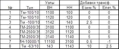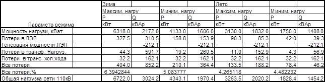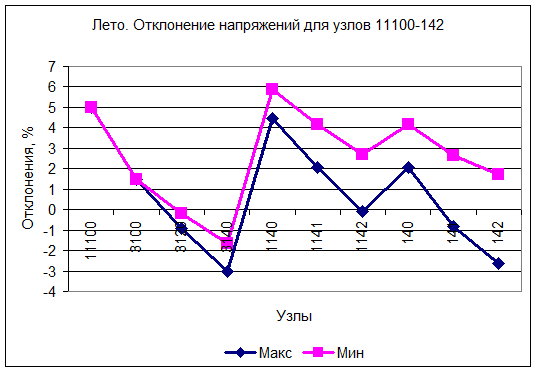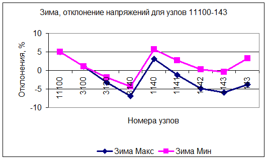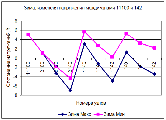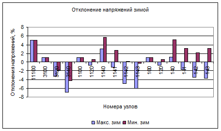 Таблица 10. Напряжения в узлах сети для зимы и лета