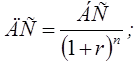 Множитель 1/(1+r)n или 1/(1+r)-n , с помощью которого уравнивается настоящая и будущая стоимость денег, представляет собой т.н. коэффициент дисконтирования. Для его расчета опубликованы специальные дисконтные таблицы, в которых показаны значения коэффициентов дисконтирования в зависимости от временных интервалов и значений нормы (процента) дисконта.