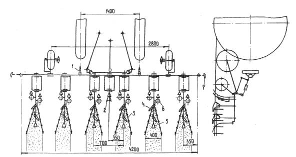 Рисунок 3.8 - Схема расстановки рабочих органов агрегата на посеве кормовой свеклы: