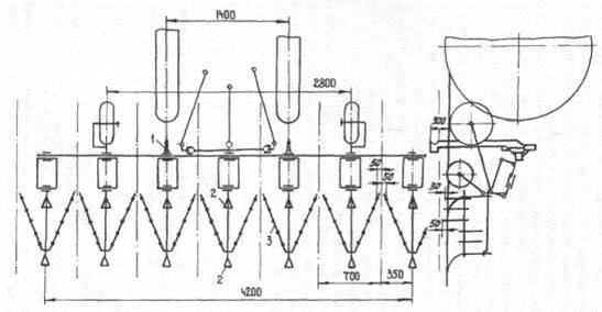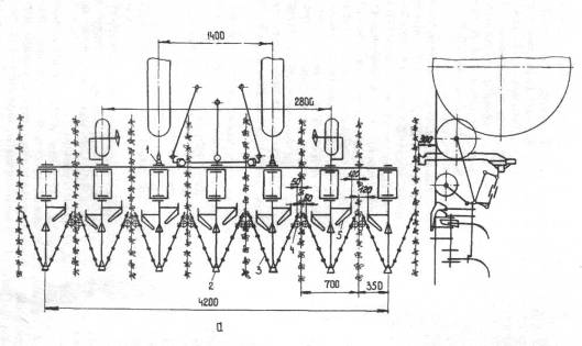 Рисунок 3.9 - Схема расстановки рабочих органов агрегата на довсходовой обработке посевов.