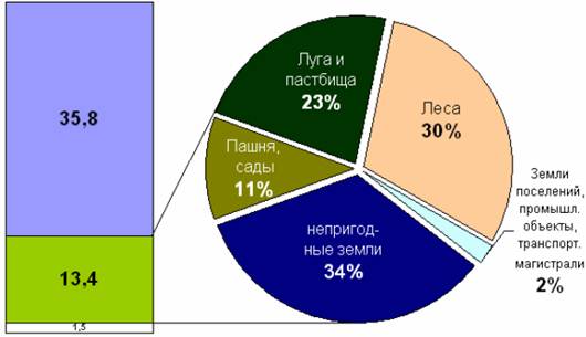 На Европу и Азию (включая Россию) приходится 2,1 млрд. га пашни и пастбищ, или более 40% обрабатываемых земель мира.