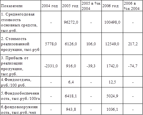 В течение трех лет показатели постепенно увеличиваются. Только показатель фондообеспеченности в 2006 году по сравнению с 2005 годом снизился за счет увеличения площади. Рост показателей связан с ростом и развитием, расширением мощностей производства, увеличением валового дохода. Стоимость основных средств в 2006 году увеличивается по отношению к 2005 году. Увеличение стоимости реализованной продукции в 2006 году составляет 50 % к 2005 году, что больше чем в предыдущем году. Та же тенденция прослеживается в увеличении прибыли от реализации продукции и фондоотдаче.