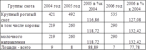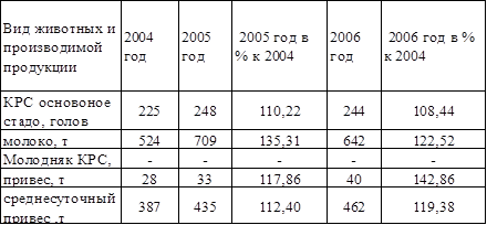 Наблюдается существенное повышение производство продукции животноводства в период с 2004 по 2006 год, так же растет производство молока, привес и средне суточный привес.