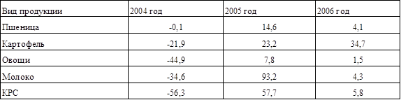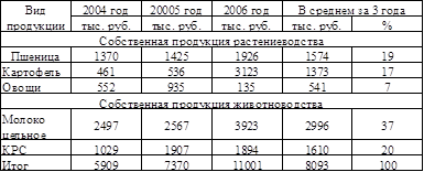 Уровень рентабельности реализованной продукции наблюдаемый в 2004 году свидетельствует об убыточности производства. В 2005 году высокие показатели рентабельности на производстве молока и КРС.В 2006 году наиболее рентабельно возделывание в хозяйстве картофеля. (Рис. 3)