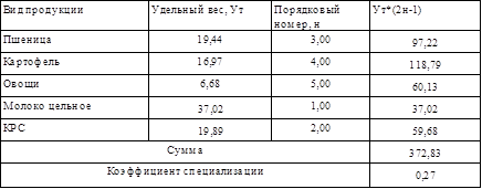 Коэффициент специализации характеризует уровень специализации хозяйства и рассчитывается по формуле: