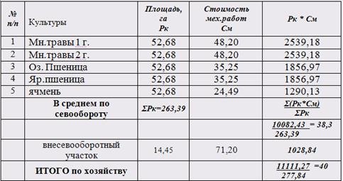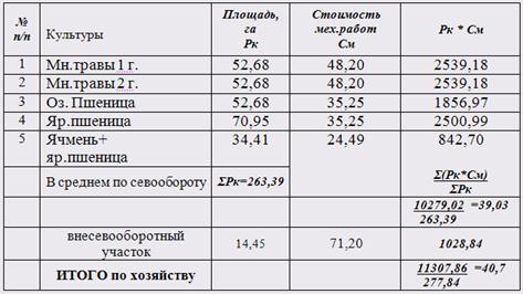 Таблица 33 - Стоимость выполнения механизированных работ (по данным технологических карт), руб. на 1 га (I вариант)