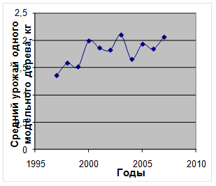 Рис. 2. Динамика среднего урожая одного модельного дерева с 1996 по 2007 годы