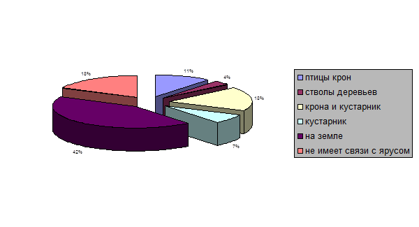 РИС.2 Соотношение мест добывания пищи к ярусами сада.