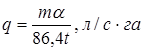 Метод расчета гидромодуля по удельному расходу воды наиболее распространен, так как позволяет разрабатывать режим орошения, когда еще не имеется точных данных о размерах орошаемой площади в гектарах по каждой культуре, окончательно не установлен севооборот. Значение ординаты гидромодуля (q) определяется по: