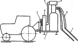 Заготовка плодов и семян с лиственных деревьев можно импользовать и воздушный поток. Этот метод сбора плодов и семян заключается в отрыве их от ветвей сильной струей воздуха путем сбивания или отсасывания. Для сбора семян сконструирован и создан опытный образец сборщика семян ССМ-1, который может работать с тракторами Т-40, Т-40А, МТЗ-50, МТЗ-52, имеющими гидронавеску и вал отбора мощности (схема 1).
