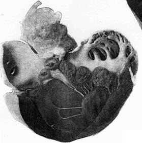 Рис. Острый бородавчатый эндокардит (отложение тромбоцитов и фибрина на клапанах).