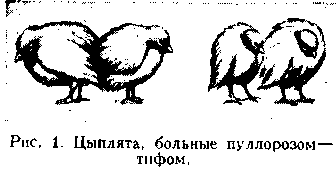 Температура тела повышается до 43—44 °С. Дыхание затруднено. Появляется понос (испражнения жидкие, беловатые). Значительная часть цыплят в первые 10—15 сутки жизни погибает. У молодняка 2—3-недельного возраста пуллороз-тиф протекает подостро или хронически. Переболевшие цыплята длительное время отстают в развитии и росте. У взрослых кур при остром течении болезни отмечают гипертермию, отсутствие аппетита, жажду, вялость и диарею. Для подострого и хронического течения характерны истощение и перемежающиеся поносы.