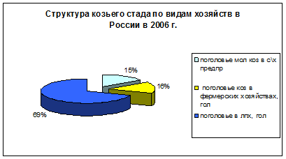 Разница же в молочной продуктивности высокоудойных коз молочной породы, например, зааненской, и беспородных коз весьма значительна: 1000 литров против 200. В 2006 году средняя продуктивность в личных подсобных хозяйствах составила 360 л. Личные хозяйства не заинтересованы в увеличении собственного поголовья коз, прежде всего из-за того что в этом нет необходимости так как при помощи 1-2 козы они покрывают свои потребности в молоке. Конечно, могут найтись энтузиасты, решившие всерьез заняться молочным козоводством, но для этого понадобиться приложить много усилий как финансовых , так и трудовых. Так что особого увеличения поголовья коз в данной категории хозяйств ожидать не стоит.