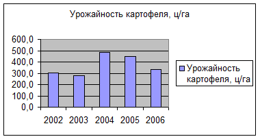 Рис. 1. Урожайность картофеля в 2002-2006гг.