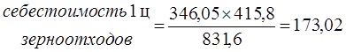 3. Из общей суммы затрат вычитаются затраты на побочную продукцию и оставшуюся сумму распределяют на зерно и зерноотходы, пропорционально содержанию полноценного зерна в зерноотходах.