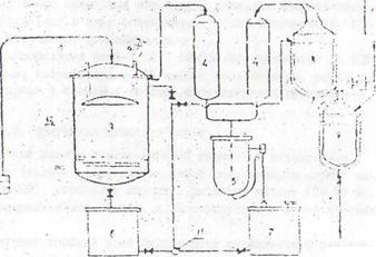 В экстрактор после слива смолистых веществ в течение 1 ч подается острый пар для отгонки растворителя (бензина) от проэкстрагированной зелени. Пары растворителя вместе с парами воды проходят через холодильник (4), конденсат стекает во флорентину (5), откуда бензин направляется в бензобак (7), а вода - в канализацию. После этого древесная зелень выгружается из экстрактора.