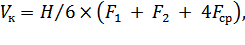 где F1 и F2 — площади дна и верха котлована, м; Fср — площадь сечения по середине его высоты, м2.
