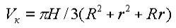 в) Объём круглого в плане котлована с откосами (рис. 1, в) определяют по формуле опрокинутого усечённого конуса: