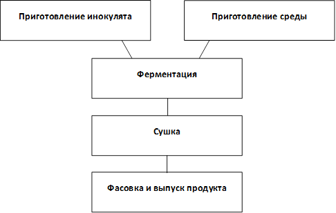 1) Подбор штамма бактерий, обладающего требуемыми свойствами (достаточная скорость роста, обязательно устойчивость к сухим условиям, и ряд свойств, необходимых для конечного продукта)