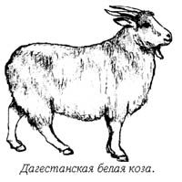 Продуктивность. Шерстный покров дагестанских коз на 80% состоит из пуха и переходного волоса толщиной в среднем 18,3 мкм и длиной 9,7 см. Прочность пуха 10,9 сН/текс. Длина остевых волокон 5 см, толщина 60,1 мкм. Средний начес пуха с 2летних коз 360 граммов, настриг шерсти 0,12 кг. В племенных отарах начес пуха с козлов составляет 800 г, с козликов в возрасте 1 года - 250 г, 2 лет - 500 г, с маток - 450 г, с козочек 1 года -200 г, 2 лет - 400 г.