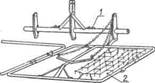 Лапчатые бороны предназначены для предпосевной обработки зяби с подрезанием сорняков без перемещения верхнего слоя почвы. Отечественная промышленность выпускает лапчатую, трехзвенную борону ЗБЗЛ-1,0 (рис. 46). Рабочими органами бороны являются рыхлящие лапы / с шириной захвата 75 мм и высотой 140 мм и прикатывающие катки 3. Лапы установлены с перекрытием по следу. Глубину обработки регулируют в пределах 4—7 см перестановкой прикатывающих катков 3 и осей опорных колес 2 по высоте. Ширина захвата бороны 3 м. Рабочая скорость 6 км/ч. Борону агрегатируют с тракторами Т-25А, Т-40А, Т-40М, «Беларусь», ЮМЗ-6Л. Масса 260 кг. Производительность 1,8га/ч.