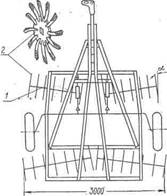 Сетчатая борона БСО-4,0 с навеской НУБ-4,8: / — навеска; 2 — борона.