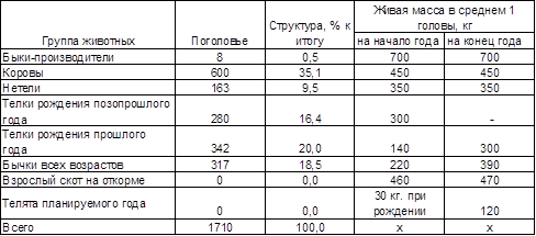 1.1 Проектирование поголовья животных, их продуктивности и объема производства продукции