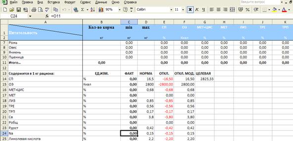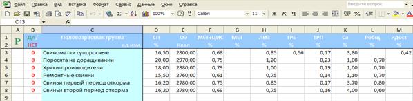 Целью данной работы является создание программы для расчета рецептов кормления свиней средствами MS EXCEL.