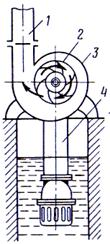 1 - напорный патрубок; 2 - рабочее колесо; 3 - корпус; 4 - всасывающий патрубок.