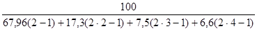 i – порядковый номер удельного веса товарной продукции в ранжированном ряду.