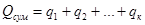 q1, q2, qк— общее количество соответственно каждого вида корма для всех групп животных, кг; к - количество видов корма в рационе. Тогда