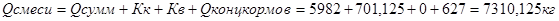 Кв= 0, так как вода еще не добавляли в смесь корма. Если будет необходимость, то вода добавляется в количестве 0,5 .1,0 л/кг смеси компонентов.