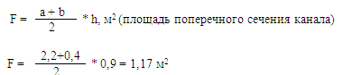 4. a = 2m + b, м (ширина канала по верху), a = (2*0,9) + 0,4 = 2,2 м