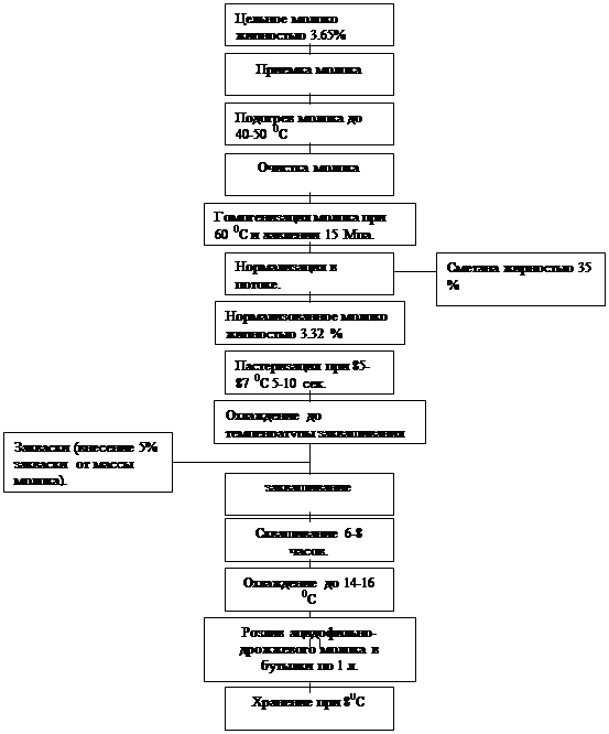 Технологическая схема производства ацидофильно-дрожжевого молока жирностью 3,2%.