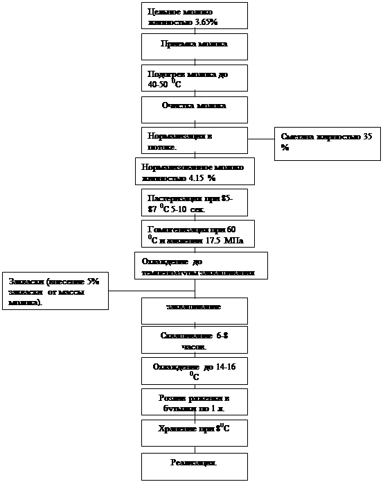 Технологическая схема производства ряженки жирностью 4 %.