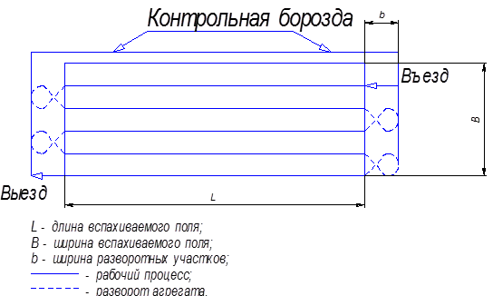 Ширина поворотной полосы должна быть кратной ширине захвата плуга (для полунавесных 9-ти корпусных до 25 метров).