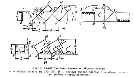 . На рис. 4 приведены основные геометрические соотношения элементов отвального пласта.