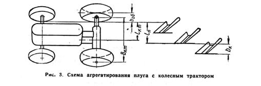 Прямолинейность движения колесного трактора, не имеющего приспособления для блокирования дифференциала, не будет нарушаться, если линия тяги лежит в вертикальной плоскости, проведенной через середину, линии, соединяющей точки соприкосновения ведущих колес трактора с почвой (рис. 3).