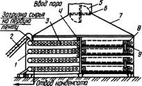 Тепловая сушка плодов и овощей осуществляется в сушилках разнообразных типов — шкафных, канальных. Наиболее распространены паровые ленточные. Процесс идет в них непрерывно, что дает возможность организовать поточное производство сушеной продукции.