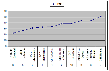 Рисунок 4. Ранжированный ряд данных по признаку урожайности