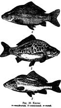 Карп — основной объект прудового тепловодного рыбоводства, имеет широкое распространение в РФ (рис. 1). К. живет в теплых, хорошо прогреваемых прудах и водоемах. Половой зрелости достигает в возрасте 3—4 лет, плодовитость от 200 тыс. до 1700 тыс. икринок. Нерестится на мелких местах со свежезалитой мягкой луговой травой при температуре 16—18°. По типам чешуйчатого покрова различают следующие группы карпов: