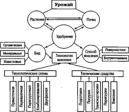 Видно, что технология применения удобрений определяется их видом и способом внесения, кроме того, она включает технологические схемы и технические средства.