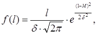 соответствует среднему значению признака l=M . По мере удаления от точки M плотность распределения падает и при l→±∞ кривая асимптотически приближается, а оси абсцисс.